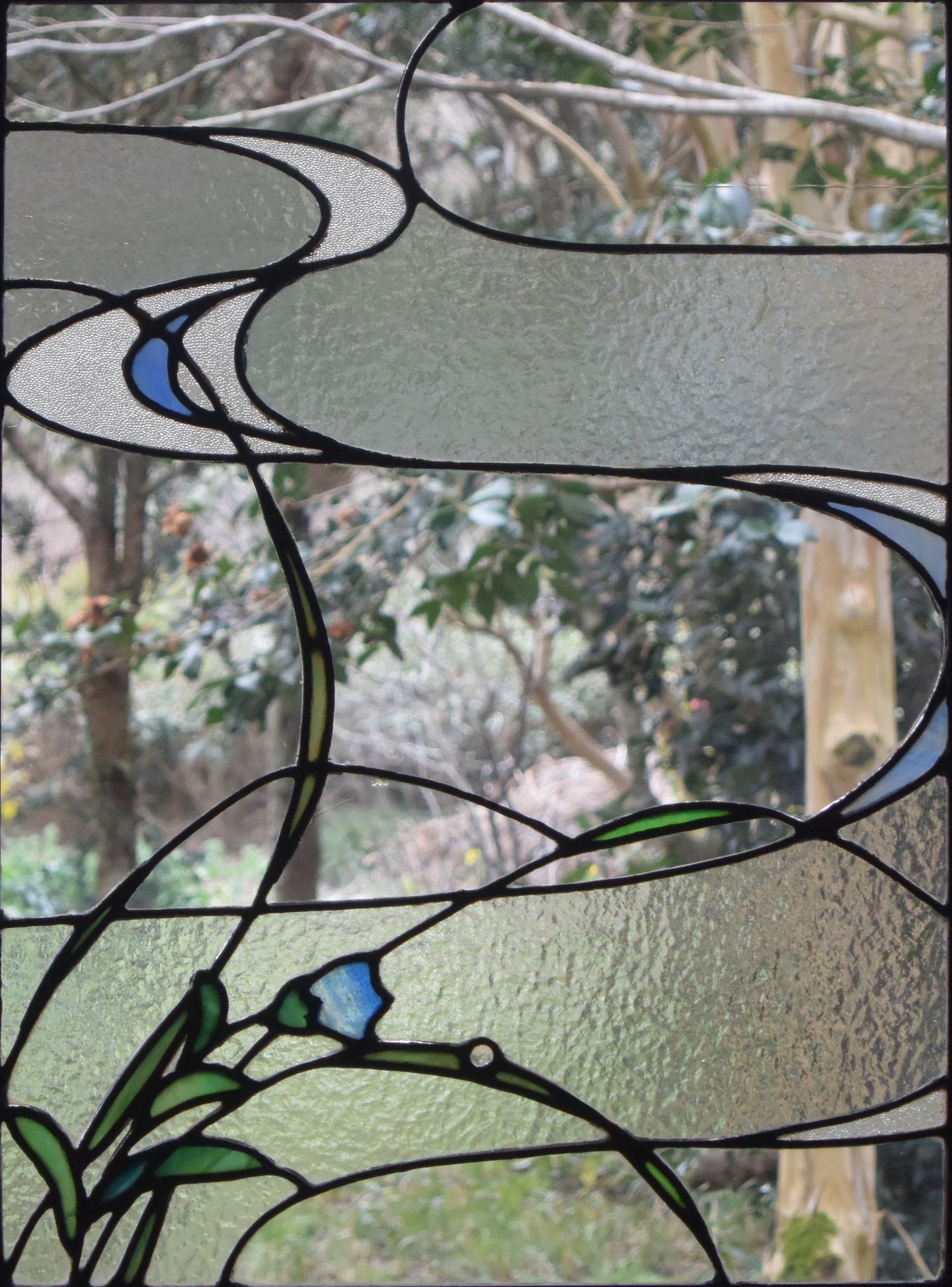 この作品は、西洋の過剰な装飾、圧倒的な光と色彩のステンドグラスとは正反対の美。